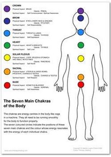 A főcsakrák kapcsolódnak a fizikai test megfelelő testrészeivel, belső elválasztású mirigyrendszerével is.